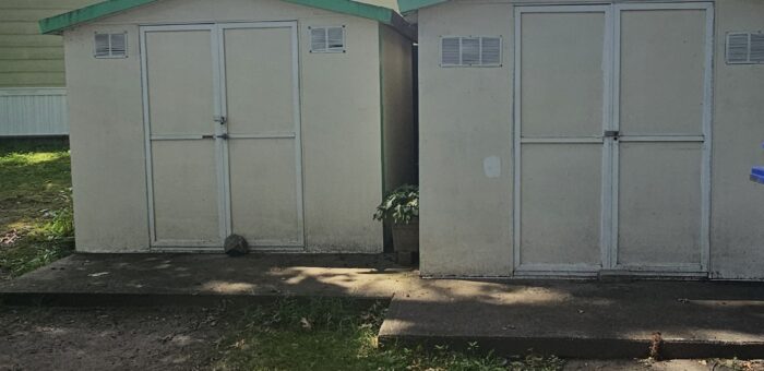 - The large outdoor space offers a screened porch, 2 aluminum storage sheds and off street parking.